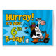 " Hurray! é seu 6o B-dia!" vaca do patinete do divertimento no cartão específico à idade do aniversário