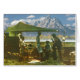 Uma colagem da arte de propaganda velha que mostra os vaqueiros que comem, e o interior são um cão feliz, um ornamento do vintage na área de papel áspera da escrita do interior.