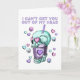 Lindo cartão de dia dos namorados assustador com corações de amor azul pastel e roxo e caveiras flutuando em torno de um copo de bebida de boba de caveira de chá bubble. Um pouco feminino e um pouco gótico, com uma mensagem que diz, não consigo tirar você da minha cabeça. Por dentro está em branco para que você possa escrever à mão sua própria mensagem perfeita para aquele que está sempre na sua mente.