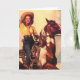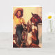 Ilustrações do vintage em cores ricas de uma vaqueira bonito em seu pônei manchado
