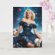 Uma vintage loira num vestido com estrelas por todo o lado e três gatos brancos flutuando nas estrelas fantasia IA gerou arte