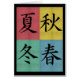 Cartão bonito, colorido que mostra as quatro estações no kanji japonês com as quatro cores do fundo que representam cada estação. O esboço preto pode facilmente ser mudado clicando no botão da personalização. Visite a loja para presentes de harmonização.
