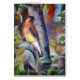 De uma pintura a óleo original por Brenda Thour de um pássaro bonito do waxwing de cedro empoleirou-se em uma árvore com folhas toda em torno dele. Copyright por Brenda Thour 2004.