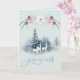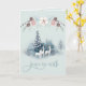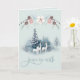 Cartão de Saudação de Natal | Foto-Dentro - Deixem-na Neve - Linda cena da montanha de aquarela - pinheiros verdes e nevados, com três cervos brancos mágicos no primeiro plano - dentro a lugar para a sua foto e embelezados com um spray botânico de inverno - um spray floral botânico de inverno nas costas. Tudo em um fundo verde de menta muito claro. Esta é parte da Watercolor Woodland Deer Collection by WhimsicalArtwork™