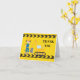 Cartão de agradecimento de escavadeira de construção personalizada legal para uma criança que ama veículos de construção amarelos em preto e amarelo. Design de veículo divertido para um menino que ama carros e caminhões. Personalize com o nome do seu filho sob a fita de advertência preta e amarela.