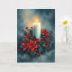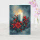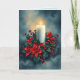 As cores brilhantes das poinsettias e holly compensam a mística névoa azul e a chama amarela nesta nota de Natal. dentro vazio para você escrever seus pensamentos e desejos mais expressivos para um ente querido. Projetado com o uso de software de inteligência artificial.