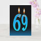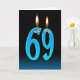 Olhais em uma vela de aniversário de 69 anos com fundo gradiente.