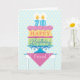 Um cartão de aniversário para seu amigo de 70 anos. "Parabéns" está em cada camada do bolo com gelo decorativo rosa separando-os. Um fundo sutil de amarelo e azul ancora o design. As cores brilhantes e um estilo gráfico ousado dão a este desejo de aniversário um sentimento festivo. Você também pode mudar "Amigo" para personalizar qualquer um.