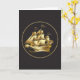 Um belo navio dourado de velas altas sobre um fundo preto contrastante. Adequado para todas as ocasiões, você pode adicionar texto ou outra mensagem na parte externa e interna deste cartão selecionando o botão "personalizar" e inserindo seu texto.