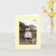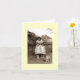 Esta fotografia retrosépia de duas gêmeas pequenas de 1959 destaca-se realmente neste cartão. Os gêmeos idênticos de cinco anos bonitos estão vestindo seus vestidos de impressão favoritos que a mãe deles fez para eles. Eles estão no jardim dos fundos da casa do conselho com sua irmã mais velha, ela tem seus braços carinhosamente ao redor de seus ombros e ela está vestindo um vestido que mostra a moda para vestidos completamente deslumbrados vestidos com rede em camadas de cheio sob o casaco para dar mais plenitude. O gato da família acabou de se perguntar, o gengibre tom foi chamado Rusty. Esta velha foto em preto e branco mostra uma feliz cena familiar da década de 1950 e faz uma única placa retrô. Este é um cartão de nota de vazio para você adicionar sua própria mensagem escrita à mão.