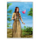 Renderização digital em 3D de uma bela mulher nativa americana com um pássaro rosa numa floresta verde