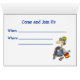 Dois personagens de desenho animados engraçados obtêm prontos por um dia na praia com aletas e câmaras de ar do snorkel com as palavras que é verão. O interior veio se juntar nos com linhas para onde e quando. Isto pode ser removido se você deseja lhe fazer um cartão.