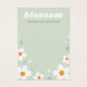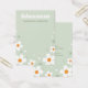 Placa de exibição de joias com flor branca de morango em fundo verde-claro e nome de sua empresa ou design em fonte retrô.