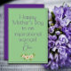 Cartão de felicitações do Dia das Mães. A frente é roxa e o verso é verde-salada. Você pode personalizar as saudações e os desejos como quiser. O design do cartão é complementado por delicadas flores de aquarela.