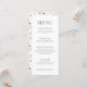 Sofisticados e caprichosamente botânicos, estes cartões de cardápio rústicos apresentam folhas verdes com terracota e flores cor de laranja quentes.