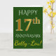 Este simples e personalizado design de cartão de felicitações de aniversário de casamento apresenta a mensagem "FELIZ 17º ANIVERSÁRIO", com o "17º" tendo uma aparência semelhante a ouro. A frente também apresenta um nome personalizado e um fundo verde. O interior apresenta uma mensagem de felicitações de aniversário de casamento personalizada. Pode ser dado a um marido ou uma esposa em celebração do décimo sétimo aniversário de casamento do casal.