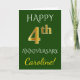 Cartão Verde, Falso Ouro Aniversário de 4 Anos de Casamen