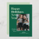 Não se aproximou de enviar seus cartões de Natal a tempo? Este cartão de Ano Novo já cobriu. Este cartão verde festivo contém a expressão "Feriados Felizes" com feriados riscados e Ano Novo escrito abaixo. Tem espaço para uma foto de solteiro na frente e mais duas fotos na parte de trás. Nunca é tarde demais para enviar um pouco de amor e alegria de férias.