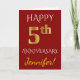 Cartão Vermelho, Falso Ouro 5º Aniversário de Casamento +