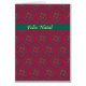 Um Cartão de Natal de na moda com saudação (Feliz Natal) em português, com um padrão repleto de bolas e estrelas em vermelho festivo e verde com cartazes dourados. Você também pode adicionar sua própria mensagem ao dentro da placa.