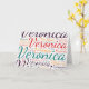 Veronica. Mostre e vista este famoso e belo nome feminino desenhado como uma nuvem de palavras colorida feita de tipografia cursiva horizontal e vertical de letras de mão em diferentes tamanhos e cores frescas adoráveis. Vista seu nome americano positivo ou mostre o mundo que você ama ou ama. Merch com este trabalho de arte de texto suave é um presente de excelente, não apenas no mês de história das mulheres, ou presente de aniversário.