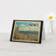 Design de Espanha em Viagens vintage de Madri com vista a uma cidade com montanhas como fundo.