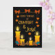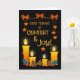 Espalhe as "Tidings Felizes de Conforto e Alegria" este Natal com estas velas brilhantes, cones de pínus, sprigs holly, arcos vermelhos e ornamentos pendurados em forma de coração e estrela! A saudação frontal do cobrir, em um roteiro informal vermelho, laranja e amarelo, é 'Tidings Felizes de Conforto & Joy!' em um fundo preto brilhante. A mensagem dentro é apenas uma sugestão e você pode alterá-la facilmente ou apagá-la completamente, se preferir um cartão de Natal 'Dentro Vazio'.