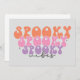 Este design exibe a frase "Spooky Spooky Spooky Vibes" disposta em um formato em cascata e empilhado. A palavra "Spooky" é repetida três vezes, cada uma em uma cor diferente - começando com um laranja vibrante, passando para um rosa suave e terminando em um roxo pastel. As letras são grossas e arredondadas, dando uma aparência alegre e borbulhante que contrasta com o tema assustador. A palavra "vibes" é escrita abaixo em uma fonte cursiva delicada e preta, adicionando um toque elegante ao design geral. Pequenos enfeites de estrelas rodeiam o texto, realçando o clima caprichoso e festivo. Este design é perfeito para uma abordagem divertida e leve do Halloween.