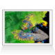 Retrato fractal colorido e surreal em cores vibrantes verdes, laranja amarelo, azul branco preto.