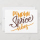 Este aconchegante e vibrante design de outono exibe a frase "Pumpkin Spice Vibes" em uma elegante escrita fluida. O texto é apresentado em duas cores contrastantes, porém complementares: um marrom rico e quente para a palavra "Spice" e um laranja dourado brilhante para "Pumpkin" e "Vibes". A combinação dessas cores captura perfeitamente a essência do outono, evocando a sensação de calor e conforto do sabor de outono favorito de todos. O estilo de letra à mão dá ao design uma sensação pessoal e convidativa, enquanto as curvas e floreios adicionam um toque dinâmico.