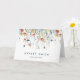 Este design apresenta uma borda de flores silvestres vibrantes em tons de vermelho, amarelo, verde, lacre e azul. Personalize com seu nome e informações comerciais.