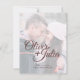 Um toque de geada branca sobrepõe sua foto sob um belo tipo para seus nomes e tipografia clássica para sua data e local. Moderno e doce, este cartão de salve a data estabelecerá um tom quente e adorável para o seu grande dia.