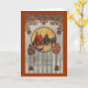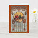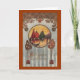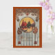 Toda Felicidade para o Vosso Aniversário Uma vinheta de três noites com velas de vermelho, laranja e verde flutuando pacificamente em águas de ouro plácida ao pôr do sol num cartão postal de aniversário de 1919, que também tem minúsculas árvores floridas em potes, e um intrincado fundo de teias de aranha, folhas e elementos do design médio do leste.