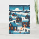 Uma representação de arte popular de uma cena de inverno em uma vila de New England.