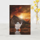 O Halloween é tão divertido e este é um cartão de boas-vindas do Dia das Bruxas divertido. Um fantasma bonito, com um legal celeiro rústico e folhagem de cor de outono. Ele segura seu copo de vinho, como em um brinde. Um dentro de mensagem engraçada. Saúde ao Halloween!