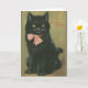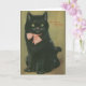 Cartão de saudação de aniversário retrô/vintage. Adorável gato preto num arco rosa! Cartões de aniversários! Perfeito para um amante de gatos!