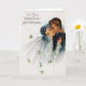 Belo cartão de aniversário de casamento vintage. Uma noiva muito romântica e noiva com "No seu aniversário de casamento" na frente. Dentro é a palavra personalizável "Parabéns".