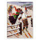 Os trabalhos de arte do vintage por Arthur Thiele descrevem uma cena cómico nas inclinações onde um casal é esqui da neve. A mulher é um principiante ou obteve-se fora do controle em seus skiis. Na tentativa de permanecer ereta e vir a uma parada, agarra o homem em torno do pescoço, puxando sua parte traseira da cabeça e cobrindo seus olhos de modo que não possa ver onde dirigiu. Sideswipes uma cerca, mas seus skiis são dirigidos certo na cerca. Outros skiiers em torno deles olhar sobre na descrença. O artista alemão, Carl Robert Arthur Thiele (1860-1936) foi geralmente pelo Arthur conhecido Thiele. Era um ilustrador dos livros, da partitura e dos cartão. Era famoso para seus animais antropomórficos cómicos vestidos na roupa e descritos dentro humano-como cenas. Os Dachshunds eram um assunto favorito de seu. Além do que animais, outros assuntos que ilustrou eram cartão dos esportes, vegetais trazidos à vida, bonecos de neve, banhando belezas, e cartão da propaganda da era WW1. O Internet é cheio das referências que confundem Carl Robert Arthur Thiele com um outro pintor alemão de seu tempo nomeado Julius Arthur Thiele que pintou paisagens. Não são o mesmo artista. Este cartão é interior vazio para sua própria mensagem.