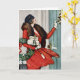 Celebrate the charm of a classic winter holiday with this beautiful vintage-style illustration featuring an elegant woman in a vibrant red coat delivering festive gifts. Holding a holly wreath and ringing a doorbell in the snow, this nostalgic scene captures the warmth and sophistication of early 20th-century holiday fashion and seasonal tradition. Perfect for Christmas cards, wall art, invitations, and festive home décor, this timeless artwork brings a touch of vintage holiday elegance to any space.