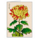 Cartão de anotação em uma vintage Ilustração japonesa de um crisântemo, em amarelo-mostarda profundo, acentuado com laranja-mandarina, com folhas em esmeralda e verde limão, sobre fundo esbranquiçado/creme, melhorado digitalmente