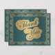 Este design tem uma arte de tipografia "obrigado" em dourado, com um fundo azulado. Uma moldura com padrão vintage está na parte de trás e na frente do cartão, em dourado. Na parte de trás do design, você pode adicionar sua mensagem personalizada e nome(s). Este cartão de agradecimento pode ser usado para ocasiões como casamentos (principalmente), chás de bebê ou até mesmo para festas de aniversário. Considere usar a ferramenta de Design para edição do estilo da fonte, incluindo tamanho da fonte, estilo da fonte e personalização de cor. Visite nossas Coleções para designs de cartões de agradecimento semelhantes.