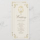 Programa Elegante de casamento vintage com detalhes barrocos dourados e quadro clássico de monograma. Impresso em fundo creme, este programa de lado duplo inclui a ordem de cerimônia e a lista de festas de casamento. Perfeito para casamentos de inspiração vitoriana, formal ou eterno.