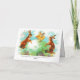 Este Felz pascoa de cartão de saudação personalizável para você dobrou dois coelhos de Páscoa, um pintinho de Páscoa amarela e um gigantesco ovo de Páscoa terrestre que retrata uma silhueta de nuvem abstrato da América do Norte. Há pedaços de flores violetas de lavanda ao redor da base do ovo. De um cartão-postal antigo na nossa coleção postada "1908 / Cameron Mills NY." Você pode personalizar facilmente a mensagem de texto; cor da fonte, tamanho e estilo com os botões Zazzle Edit Design e Personalize.