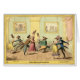 Uma ilustração cómico do vintage que caracteriza quatro casais devista que dançam sua versão da valsa. A ilustração é intitulada "espécimes de Waltzing" no centro dianteiro inferior do cartão. O interior do cartão está vazio para sua própria mensagem.