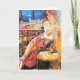 Colorful vintage illustration of a fortune teller sitting on a European terrace with her crystal ball and cards.