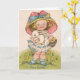 Cartão Vintage Girl With Bunny Easter Greeting Card