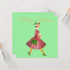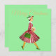 O Natal como parecia na década de 1950 com esta trabalho de arte retrô de uma senhora vestida de chapéu e cheio de vestido picado em vermelho e verde brilhante.