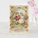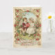 This greeting card shows a vintage-style garden scene where two cherub-like children sit close together on a stone bench, their faces turned toward each other with a shy, affectionate focus 🥰. The boy wears small white wings and a deep maroon suit, and he leans forward to offer a red heart-shaped gift box that becomes the main point of attention ❤️. The girl, dressed in a white ruffled dress and bonnet, holds her hands near the box as if accepting it carefully, her posture soft and attentive. Around them, an oval gold frame wraps the picture, filled with clusters of pink and crimson roses and leafy green accents that feel like a blooming border. Above the pair, two white doves glide through the air, adding a gentle sense of closeness and calm to the scene. The background has an aged paper look in warm cream tones, giving the whole design an old postcard feel. Beneath the illustration, a ribbon banner carries the message “To My Dearest Love, A Gift From A True Heart” in dark lettering that stands out against the pale banner. The roses are arranged thickest along the sides of the oval, with smaller blooms tucked near the bottom curve of the frame.
