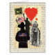 Uma engraçada colagem digital patriótica da América de ilustrações retrógradas de ícones americanos, cowboy, índio nativo americano e estátua da liberdade com um beijo de lábios de bandeira americana, balões de coração românticos e texto de Merica. Visite a LOJA VINTAGEPRINT para mais namorados inspirados em vintage.