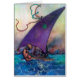 Uma ilustração vintage usando blues e roças vibrantes na água, no céu e na vela do navio. Esta é "Galley de Cleópatra" de uma história no livro "Folk Tales of Bengal". O artista Warwick Goble (1862-1943) foi um ilustrador inglês que foi influenciado pelas técnicas japonesas de aquarela. Ele é mais famoso pelos livros infantis e pelas ilustrações do livro de fadas. O cartão é vazio de dentro para a sua própria mensagem.